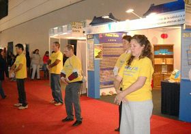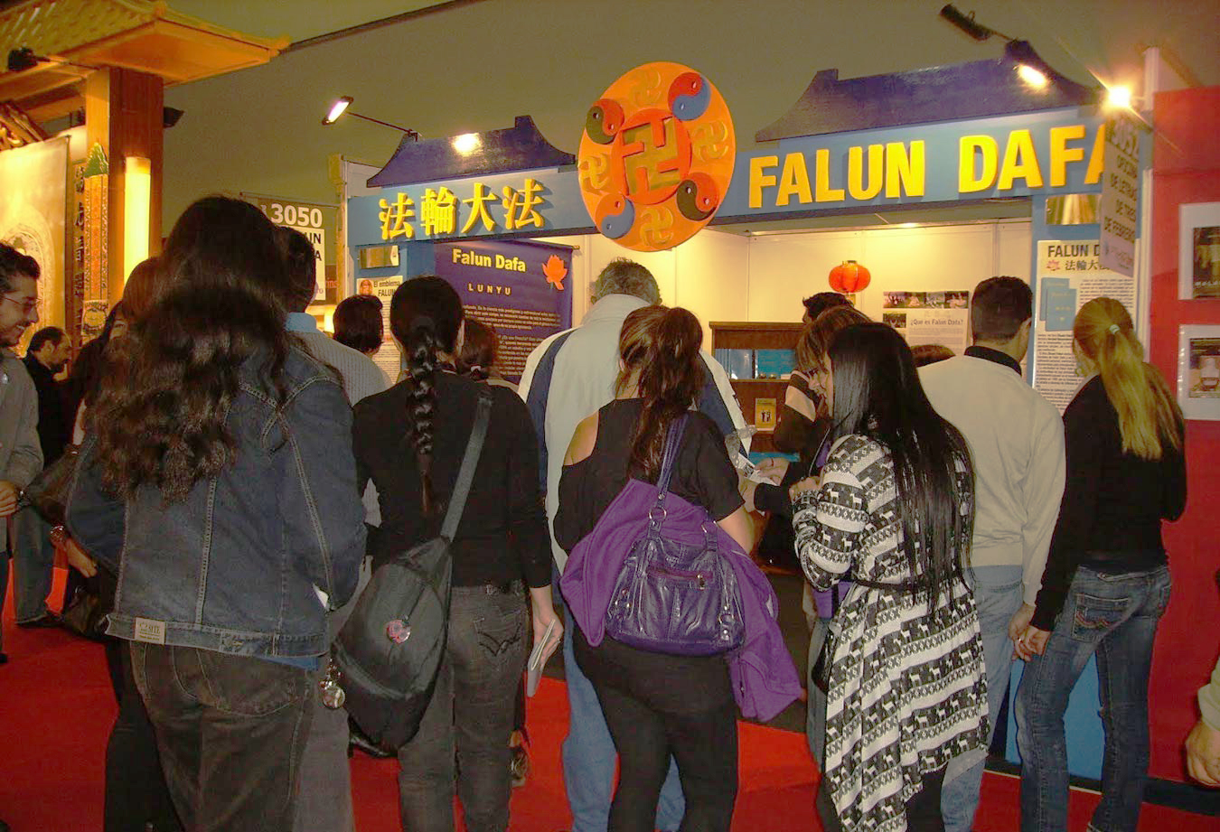 每年一度的阿根廷国际书展是全世界最大的书展之一,每次都吸引超过四百多家世界各地的出版商和书店和一百多万的现场观众。国际书展不仅是一个极受欢迎的国际水准的文化活动,也是各个国家、团体组织传播自己文化的良机。二零零四年,法轮功学员第一次参加了世界书展,吸引了墨西哥、哥伦比亚、乌拉圭的书店推销商找到学员们咨询如何在他们国家推销《转法轮》。特别是乌拉圭,与阿根廷相邻,通过书展,乌拉圭也建立了炼功点。