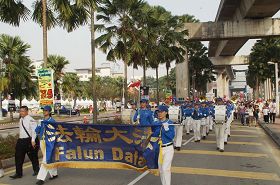 【明慧网二零一三年六月二十日】二零一三年六月十六日,马来西亚八打灵再也狮子会(Petaling Jaya Lions Club)在八打灵再也市政厅举办了第十届“盲人携带盲人”慈善步行活动,并首次邀请了由法轮功学员组成的天国乐团为引领步行人群的乐团,振奋人心的乐曲备受大家的欢迎。主办方也安排了一个展位给法轮功学员介绍功法,许多出席者有机会了解了法轮功真相。
