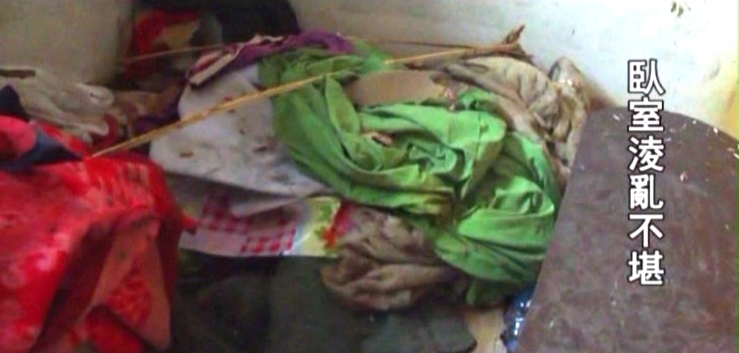 柳志梅沾满屎尿的衣裤堆放在墙角(摄于二零一一年冬)