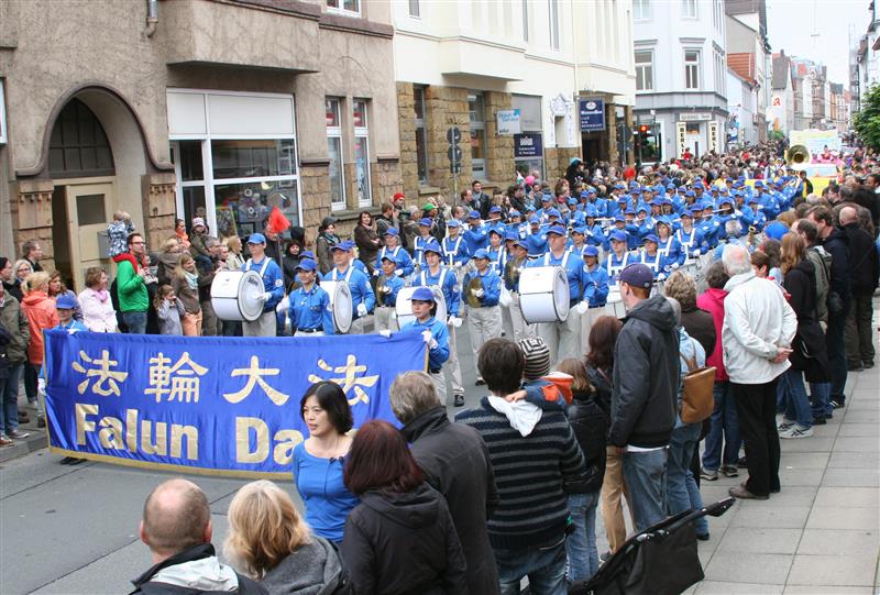 【明慧网二零一三年六月四日】二零一三年六月一日,德国北威州北部的大学城比勒菲尔德(Bielefeld)迎来了该市的第十七届文化狂欢节,也称多元文化节。本届多元文化节据悉约有七十个不同族裔和组织的团队参加,期待近十万的观众观赏。法轮功学员再度应邀参加了这个一年一度的活动,其阵容庞大的游行队伍、两个信息台以及舞台上的功法展示受到人们的欢迎。