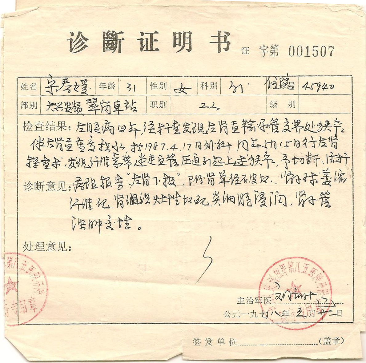郑州市40岁的法轮功学员陈丽君,就是在三大队被上绳、毒打折磨的不成人形后才让出外就医,仅二十多天后,即于2004年9月29日含冤离世。