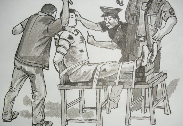 中共酷刑演示:板刷刷皮肤
