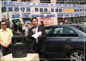 二零一三年七月十七日下午三点,法国法轮功学员在位于巴黎的中共使馆对面举行反迫害集会,抗议中共对法轮功长达十四年的残酷迫害,揭露中共活体摘取法轮功学员器官牟取暴利的反人类罪行。