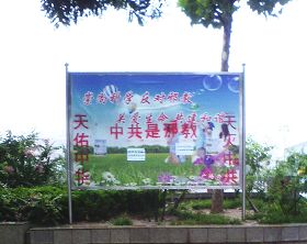 清除邪恶展板是我们大法弟子义不容辞的责任,不能等,不能靠,刻不容缓,经协调商议后,近几日内全体大法弟子加大力度发正念,较远距离的同修也都通知到,使所有大法弟子都溶入到整体中来,行动的当晚,一切在师尊的安排当中,看似复杂危险,环境险恶的情况下,在师尊的慈悲呵护中,在同修们的正念加持下,在全体大法弟子的密切配合中,非常顺利的清除了邪恶毒瘤,并且在展板上用刻好的模板喷上“中共是邪教、天灭中共、天佑中华”。在周围的树上、电杆上贴上大量的真相不干胶,由此,有力的震慑了邪恶,救度被毒害的众生。