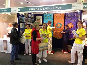 二零一三年六月二十八日至三十日,法轮功学员第六次来到布里斯本的昆士兰皇家国民农工协会展示中心,在这个澳洲一年一度最盛大的身心灵庆典活动上,为参观者介绍法轮功。