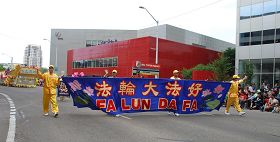 埃德蒙顿法轮功学员参加淘金节大游行(图)