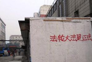 近日内蒙地区出现“法轮大法好”的真相条幅