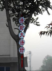 2013年7月20日前夕,在内蒙古多伦县通往北京的公路边的树上及景区的路边上出现了非常醒目的“法轮大法好”的条幅。