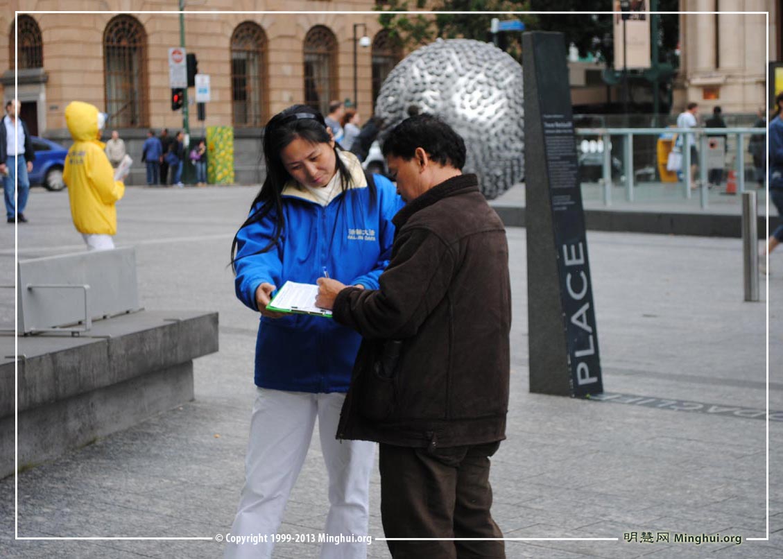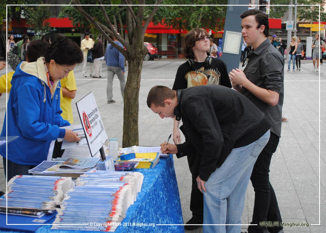 活动中,很多澳洲中西方的民众主动上前签名支持法轮功。