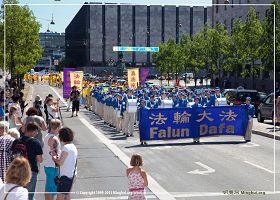 二零一三年七月二十日,欧洲法轮功学员和支持者汇集在丹麦首都哥本哈根,举行和平反迫害游行活动,呼吁社会各界共同关注和制止中共对法轮功的迫害。