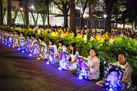 图2、3:二零一三年七月二十日,高雄法轮功学员在明诚公园举行烛光夜悼