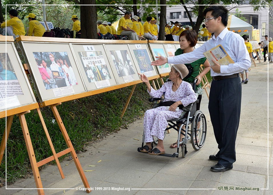 数位医界、法界人士及民意代表到现场声援,并呼吁人们不能再沉默,要一起来制止这场迫害。现场安排了学员功法演示,及记录学员在各地洪法、讲真相的摄影展。在公园运动及路过的人们,纷纷停下脚步来观看,很多人表示曾经听闻过法轮功的真相,有的表达佩服学员不畏中共强权的勇气,也有民众靠近跟着学炼起动作来,更有民众主动将真相传递给大陆的朋友。