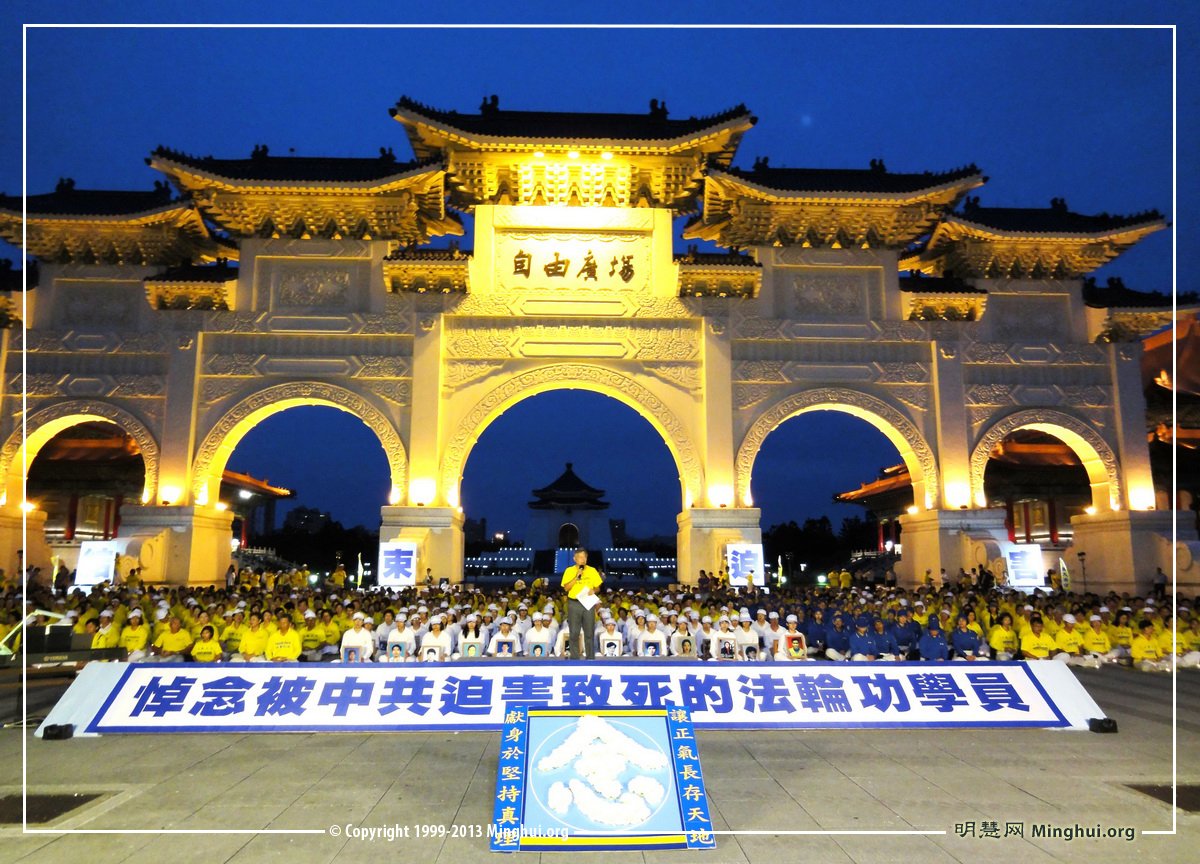 ![]() 图1:台北烛光夜悼,各界代表上台发言,大声疾呼立即停止迫害 |