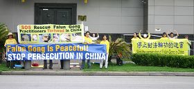 在两个多小时的活动当中,法轮功学员站立手持“法轮大法——真善忍”,“停止迫害法轮功” ,“停止活体摘取器官” ,“法办江泽民、罗干、周永康、刘京”,“解体中共 结束迫害”等中英文横幅,引人注目,有的路人主动向法轮功学员了解真相。法轮功学员的耐心与平和也感动着路人,有些竖起大拇指示赞,一些正义、善良的美国人纷纷签名支持法轮功。