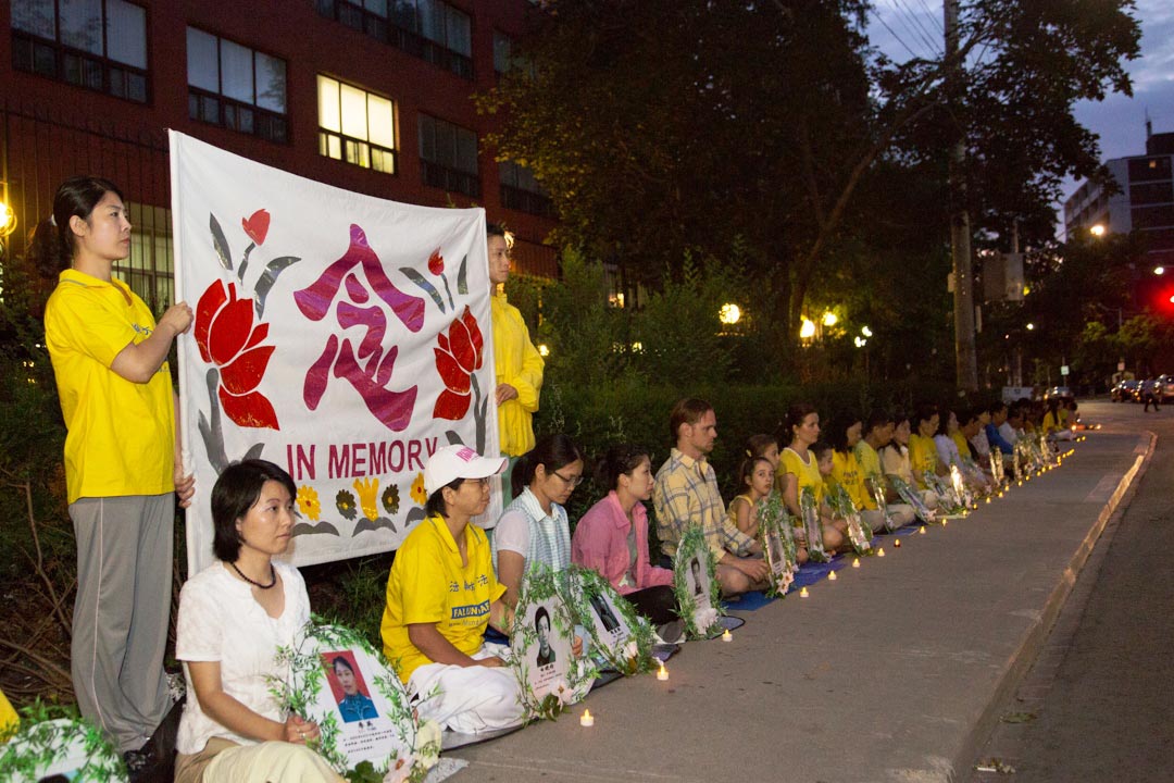 ![]() 二零一三年七月二十日晚,多伦多法轮功学员在中领馆前烛光守夜,悼念十四年来反迫害中被中共迫害致死的法轮功学员。 |