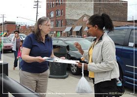被誉为美国最正宗的露天市场,每个周六,都会吸引多达四万人的来到底特律的东部市场(Eastern Market),熙攘的人们无不停下脚步,聆听学员们讲述的真相,或静静地观看学员们炼功。有的人手里已经拿满了采购的东西,仍愿意腾出手来写下自己的名字;有些人已经匆匆走过去,忽然听到学员在和其他人讲活摘器官的真相,又折了回来询问,然后签名。有些人开始有些犹豫,只是索取了资料,但看过后,无不震惊,赶紧回来找到学员签名。