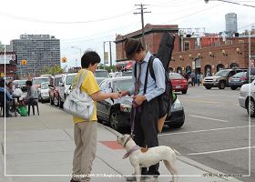 一个西人男士签完字,表示听说过法轮功,但并不了解法轮功到底是什么样的功法?他还特意转过身展示他体恤衫上的“气功”字样。原来他喜欢练气功。当他得知法轮功,即法轮大法,是佛家上乘的修炼大法,并在世界弘传,他认真地指着法轮功介绍资料上的《转法轮》书的图样急切的问征签的法轮功学员:“是这本书吗?你说的是这本书吗?”还表示要找炼功点。