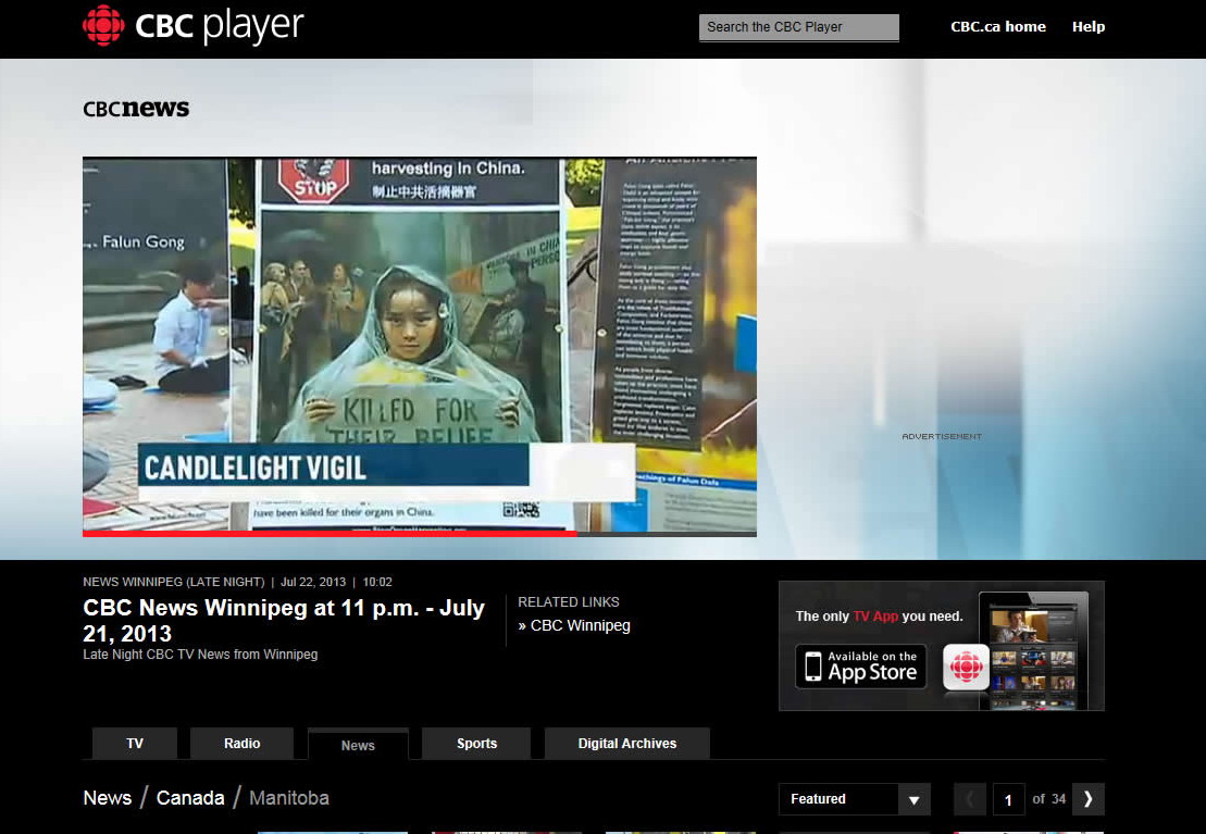 ![]() 加拿大广播电台CBC对烛光悼念晚会的报道 |