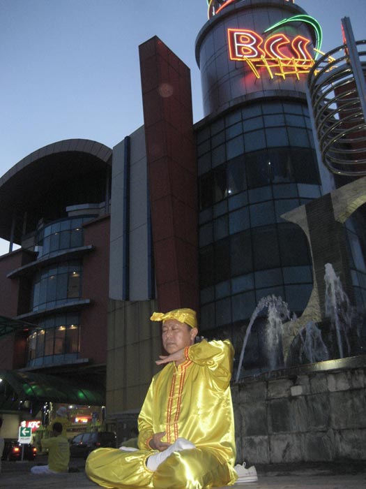 图1:巴淡岛法轮功学员在BCS购物中心门前演示功法