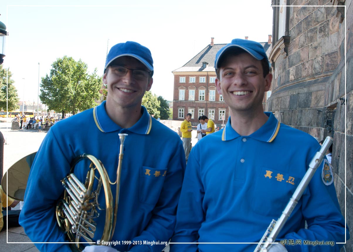 “哦,感觉好极了,刚刚我们进行了练习,马上就要出发了。”迪马笑着说,为了参加欧洲法会和天国乐团的演奏,他来到哥本哈根。“我们要向这里的人们展示法轮大法的美好,同时也让他们关注中国的人权问题,十四年来,法轮功在中国还在受迫害,我们要让哥本哈根的民众关注这一切。”