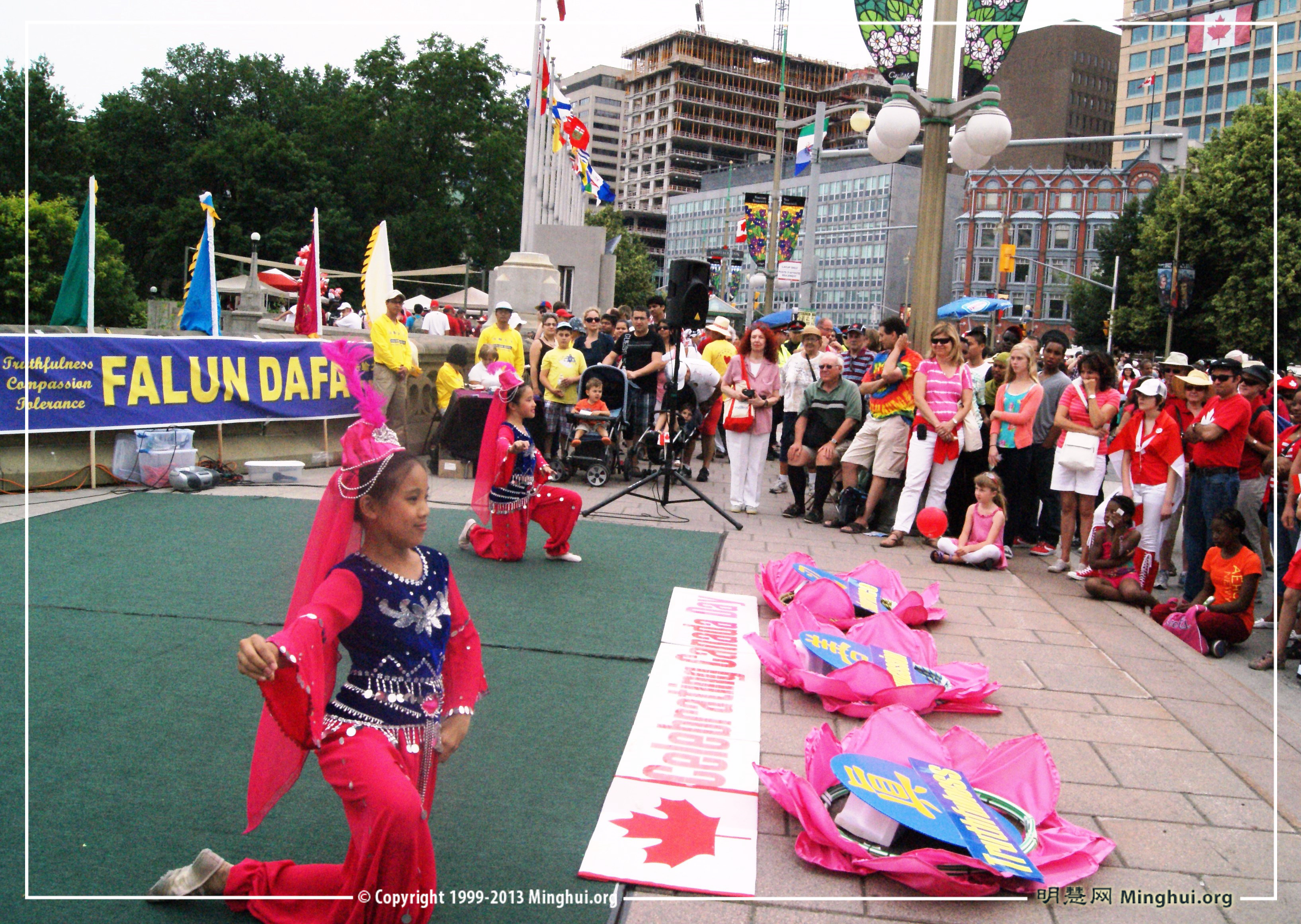 ![]() 图3:大法小弟子表演舞蹈,,和民众同庆加拿大国庆 |