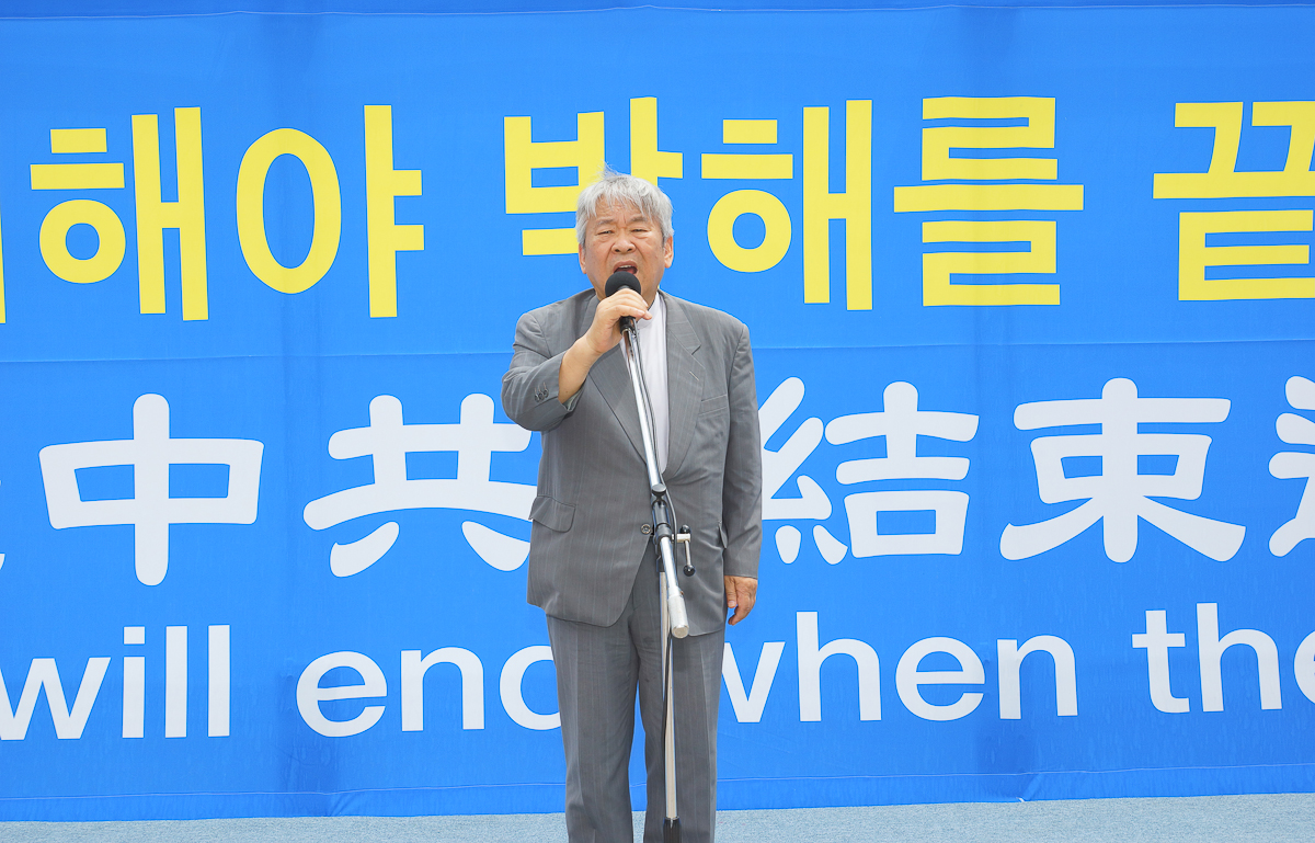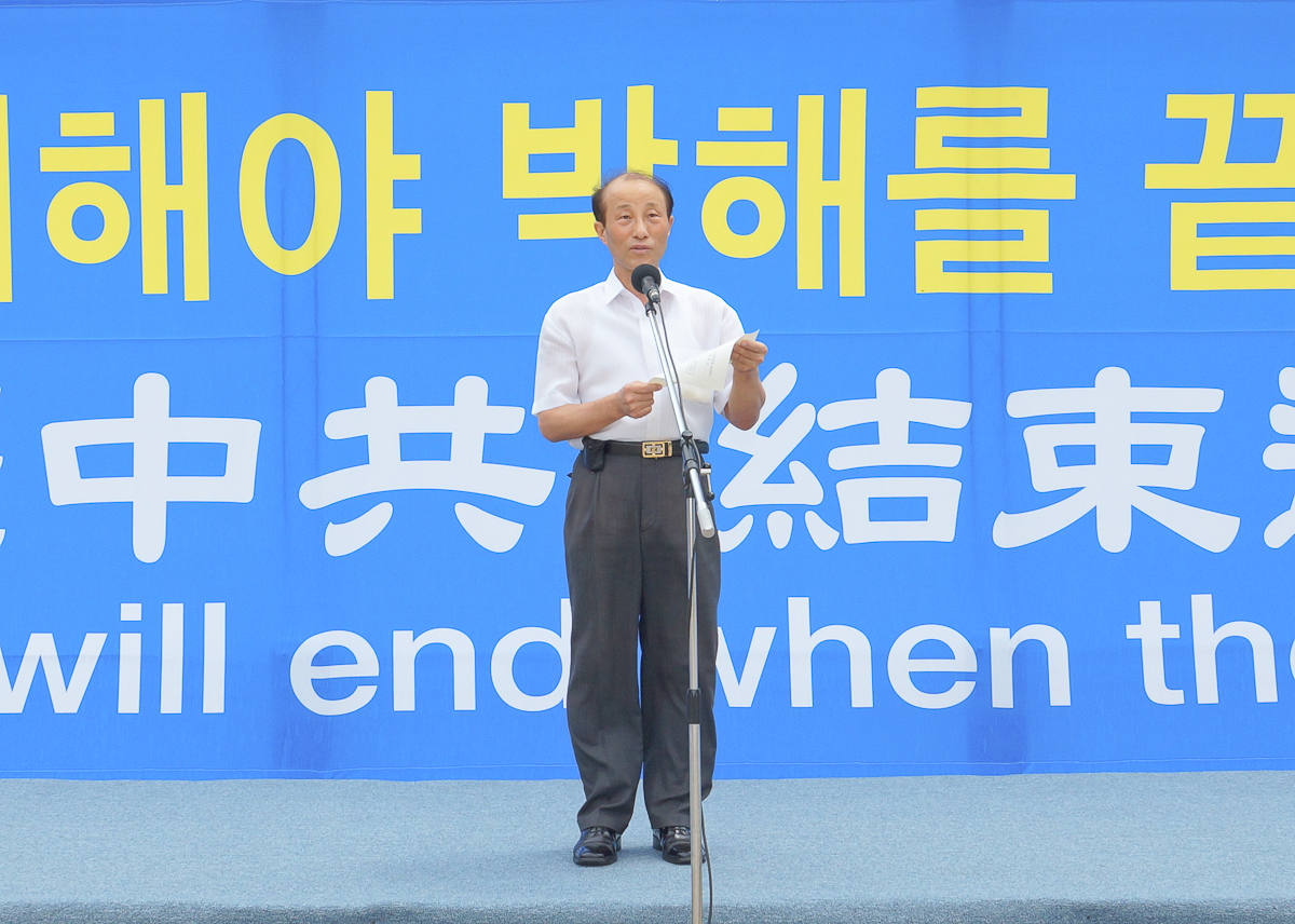 徐京锡牧师是脱北者人权团体联合会共同代表,由于他长年为北韩人权和朝鲜族人权奔走呼吁,因此在朝鲜族社区中拥有极高声望。徐京锡在当天的演讲中表示,他是朝鲜族教会的牧师,以前每年要往返中国多次,但是自从站出来为法轮功问题呼吁之后,至今一直得不到赴中国的签证。