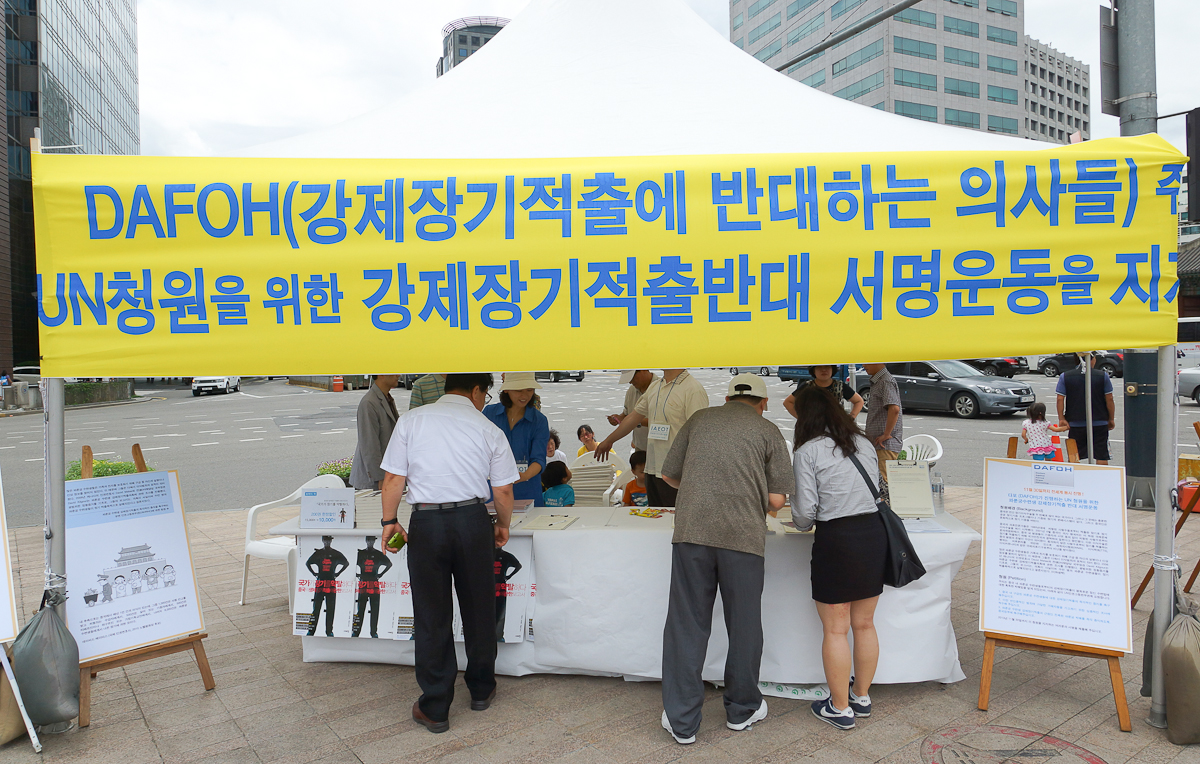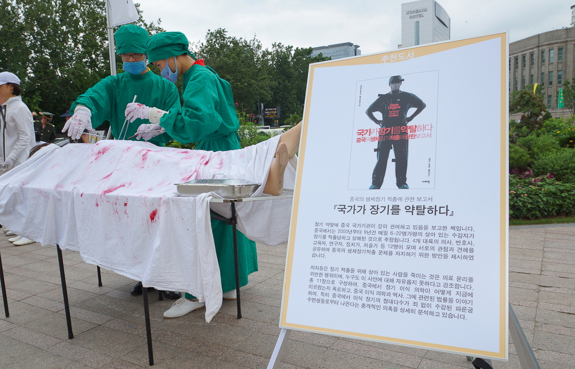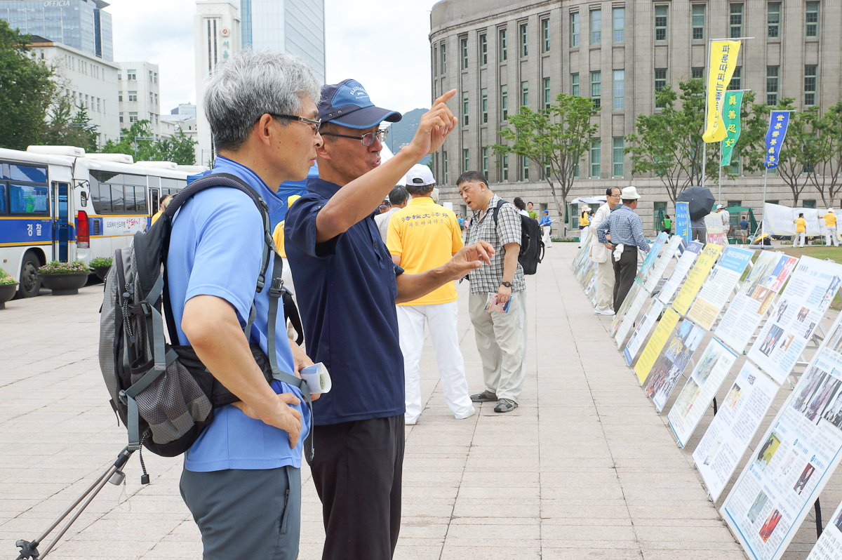 当天,还开展了多种人权活动,吸引了很多民众。通过酷刑模拟演示和揭露活体摘取人体器官的短剧展现法轮功修炼者们实际遭受酷刑的场面,国际非政府组织DAFOH(反强摘器官医生协会)在两处展开了签名活动,反对中共活体摘取人体器官。当看到被迫害致死的法轮功修炼者遗像时,当看到中共活摘法轮功学员器官的模拟表演时,首尔广场围观的市民们震惊了,他们对中共的残暴行径表示极大的愤慨。也有很多过往路人驻足观看集会场面并拍照,询问着究竟发生了什么。明白真相后,人们踊跃签名制止中共活摘器官。