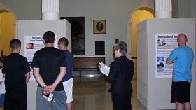 二零一三年六月二十四日到二十八日,美国麻州州政府大厦内展出的反中共活摘器官海报展,吸引州政府官员和络绎不绝的游客驻足观看。