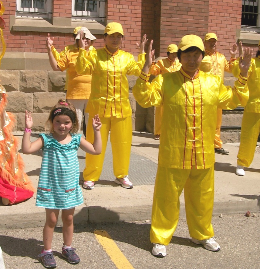 ![]() 图5:卡尔加里国庆日,四岁的小女孩学炼法轮功 |