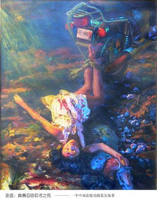 笔者以前还曾在网上留意过一幅油画,这幅油画的标题叫作“真善忍信仰者之死”。