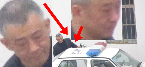 ![]() 图2:到潍坊市洗脑班迫害法轮功的两个恶警(一男一女、一老一年轻)。这两个恶警从警车上下来,后面是洗脑班牢房的窗户。然后这两个恶警和洗脑班的恶人有说有笑的进入迫害法轮功学员的牢房。 |