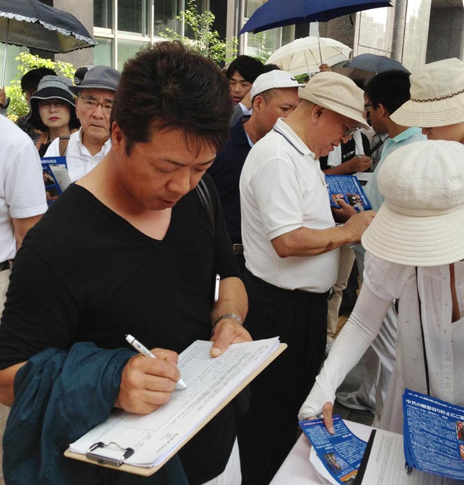 【明慧网二零一三年八月十七日】二零一三年八月十五日,法轮功学员在日本东京九段下车站举办法轮功真相介绍及反迫害征签活动,受到日本居民、游客的关注和响应,人们主动排队签名,一天下来,三千多人签名呼吁制止中共强摘器官的残暴行径。
