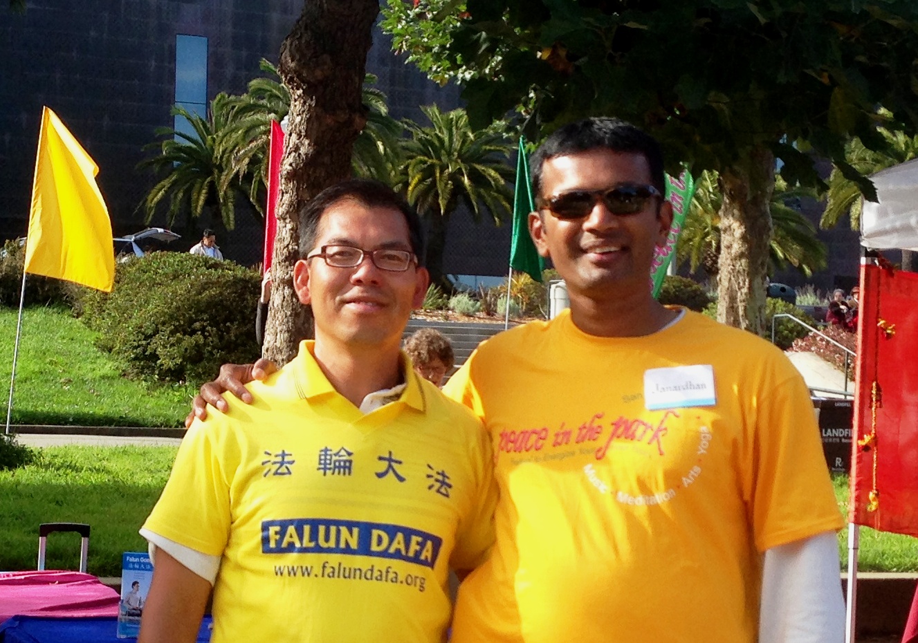 【明慧网二零一三年八月二十六日】(明慧记者李若云旧金山报道)“我一直对法轮功充满敬意”,科达甘先生(Jan Chodagam)说,法轮功的祥和美好一直给他留下深刻印象,所以,当他七月份参加一个社区活动碰到法轮功学员时,就特地邀请法轮功学员来参加“Peace in the park”活动;因为他认为法轮功的祥和与美好是这个社区所需要的。