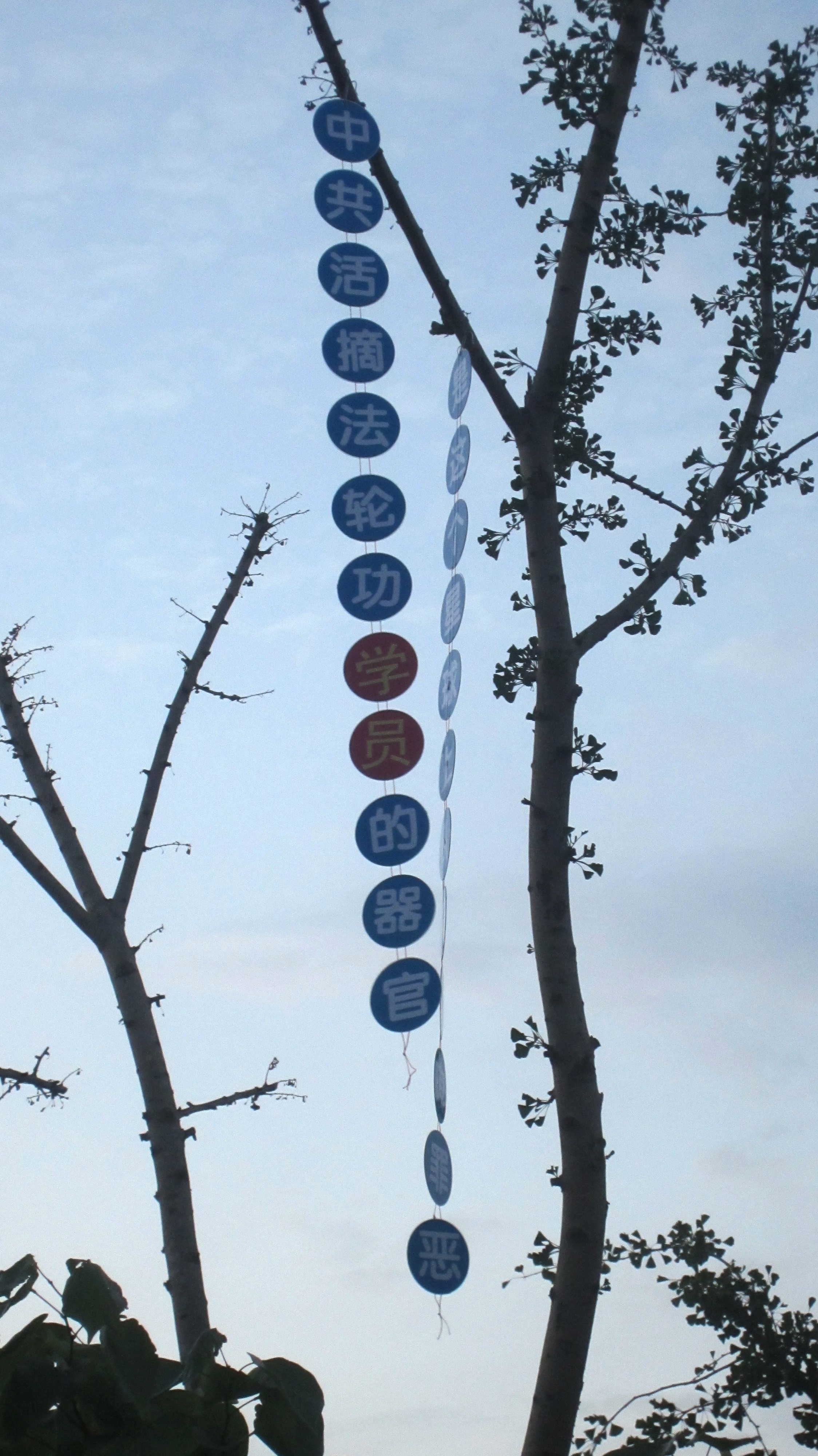 向中国大陆的百姓揭露中共活摘法轮功学员器官的罪恶,也就成了大陆大法弟子们应该做的事。湖北省的大法弟子今年“七二零”期间,首次将中共活摘法轮功学员器官的罪行用标语的形式揭露出来,让更多的人知道。各种颜色的,一串串用废光盘制作的标语高高的悬挂在城市乡村。“中共活摘法轮功学员器官谋利 是天理难容的邪恶 人神共愤怒”、“中共活摘法轮功学员器官牟利 是这个星球上从来没有过的罪恶”等标语挂出来之后,非常吸引人看,震撼着做人的良心。