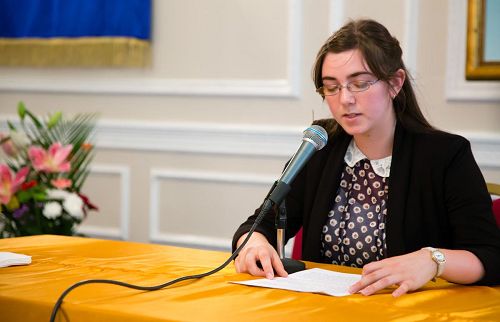 西人学员卡萝莱在法会上分享了她作为协调人之一,参与对英国各部门讲清中共活摘器官真相的体会。她重点谈了自己如何通过学法来纯净自己、更能为别人着想从而救度众生方面的实修体悟。