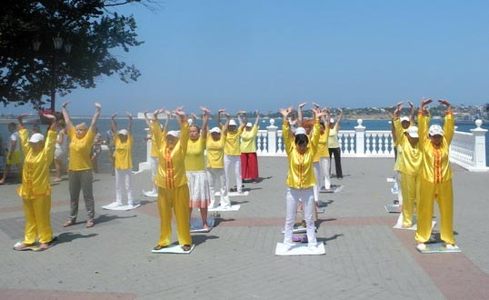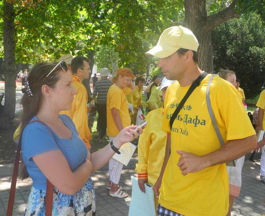 【明慧网二零一三年八月九日】二零一三年七月二十八日,法轮功学员在乌克兰克里木半岛著名的旅游城辛瓦斯多波尔市举行活动,介绍以“真、善、忍”为修炼原则的法轮功,并针对中共活体摘取法轮功学员器官的暴行,向当地居民和游客广泛征签反迫害