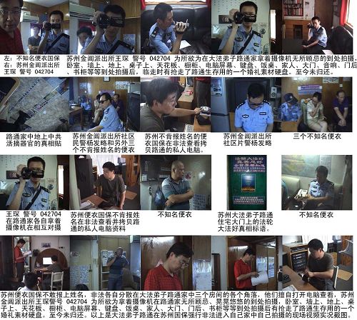 过程中,姑苏区国保和金阊区派出所警察未经当事人同意私自强行兜底翻查路燕的随身背包,拿走了三部手机,三个优盘,《九评》光盘和神韵晚会光盘等私人财产。路通上门要了多次至今都在相互推诿。