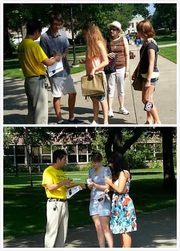 许多留学生在听完法轮功所遭受中共的迫害真相后,还主动要求法轮功学员介绍什么是法轮功。