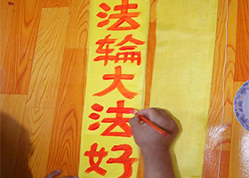 用弹弓挂真相条幅 震慑邪恶、救度众生