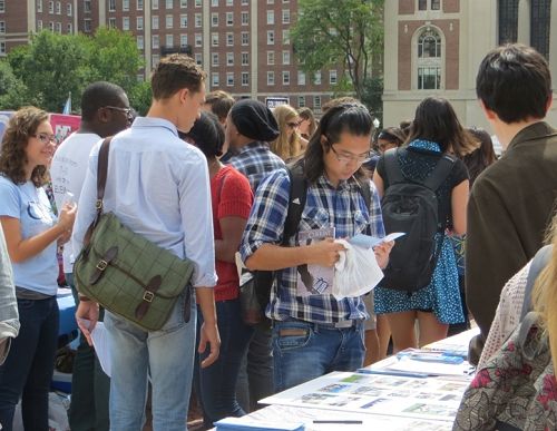 ![]() 图1-6:哥伦比亚大学法轮大法俱乐部在学生活动日上设立摊位,向校友和新生介绍法轮大法及其真相。许多学生驻足了解真相,有的并在“停止活摘器官”的征签表签名。 |
