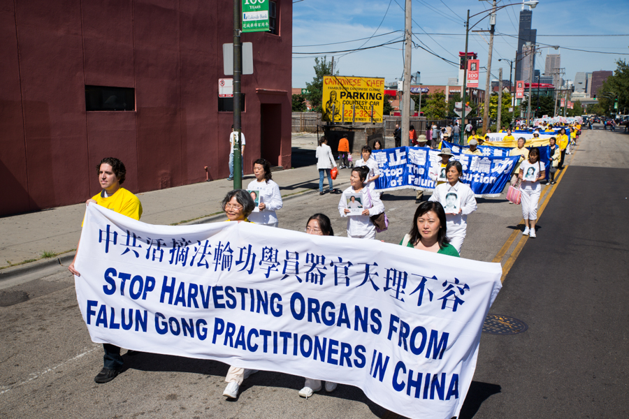 美中法轮功学员芝城南华埠游行声势浩大。 |