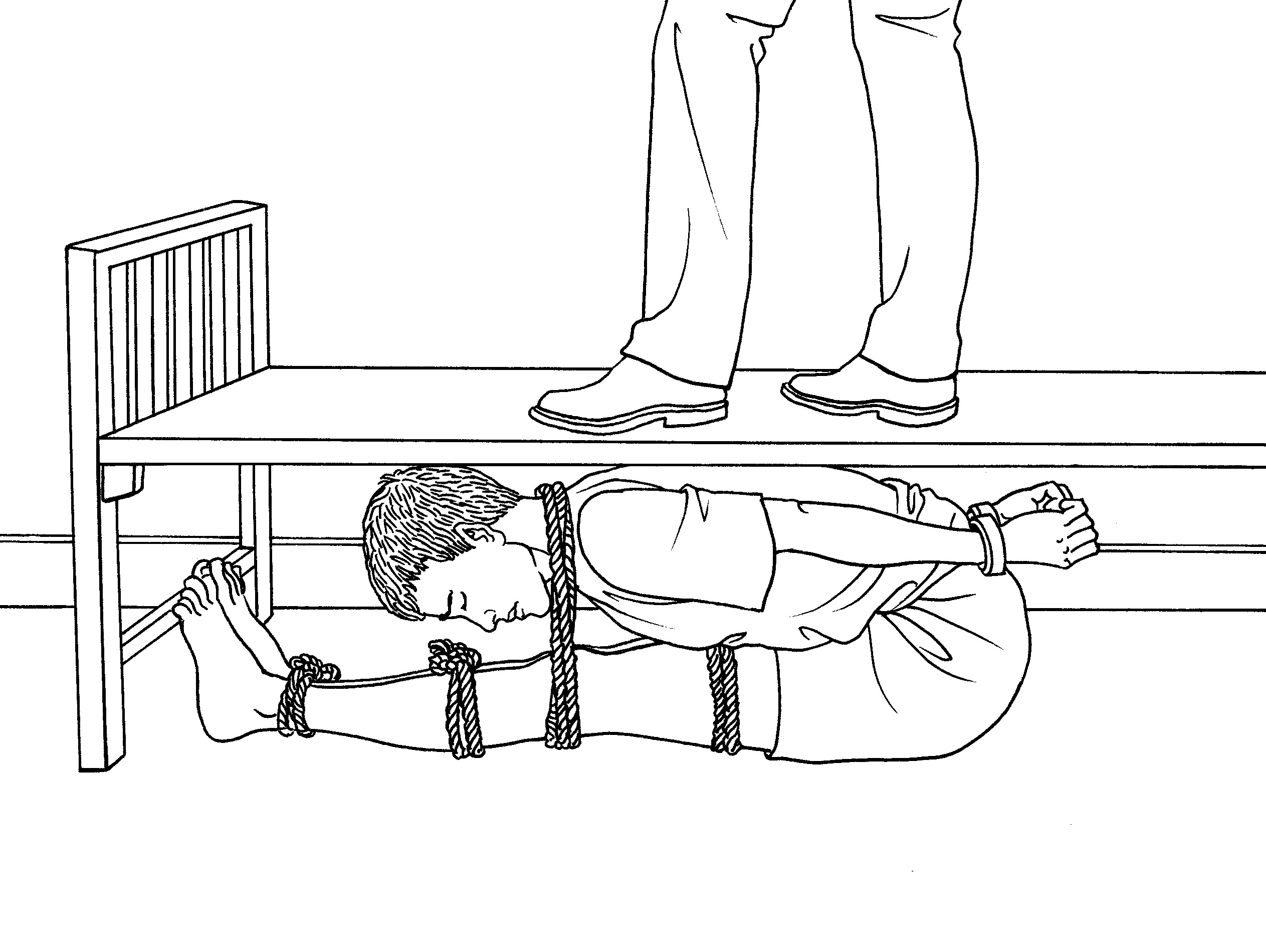 魏如潭,中国铁道部设计院工作,是受团河劳教所迫害时间最长的一名学员,他于1999年12月上天安门证实大法被抓,被劳教1年,后于2000年12月和2001年5月两次被非法延期,他性格内向,不善言谈,饱受邪恶犹大的欺凌。多名犹大在恶警的指使下,将他的双腿用绳子捆住,两臂反捆在身后,然后身体前压,脖子和小腿再用绳子捆住,用他们的话说,这种酷刑叫“抻筋”。他们还将他的鞋袜脱去,用鞋底抽他的脚心,使他好多天不能正常走路。犹大们打完后还拖着他去“游筒道”,逼迫其骂老师和大法。他在99年刚入劳教所时,身强体壮,精神饱满,二目炯炯有神,2年的残酷迫害使得他身体消瘦,背也驼了,精神萎靡不振,这足以见证团河劳教所在江罗集团的操纵下践踏人权和实施精神、肉体双重迫害的事实。