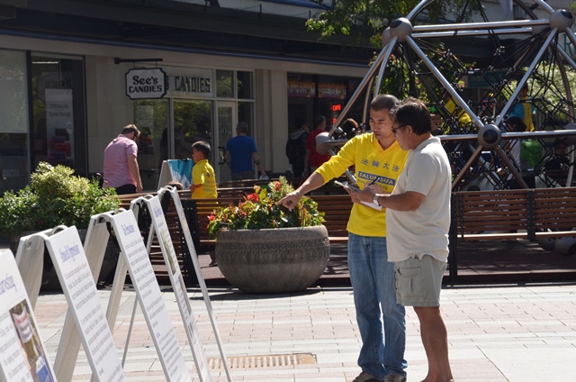 ![]() 图2:西雅图法轮功学员向民众讲真相 |