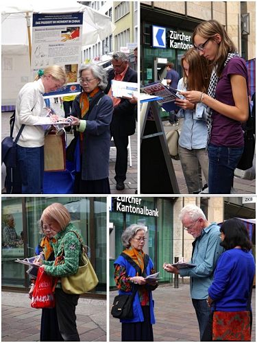 在瑞士温特图尔步行街上征签制止迫害(图)