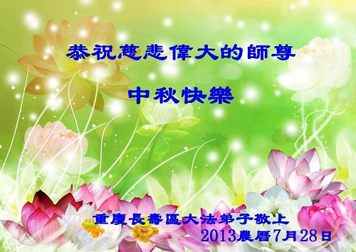 中秋节快到了,我们向慈悲伟大的师尊致以中秋的问候:师尊您辛苦了!我们一定按照师尊要求的,努力做好三件事,在剩下不多的时间内修好自己多救人,圆满随师还。