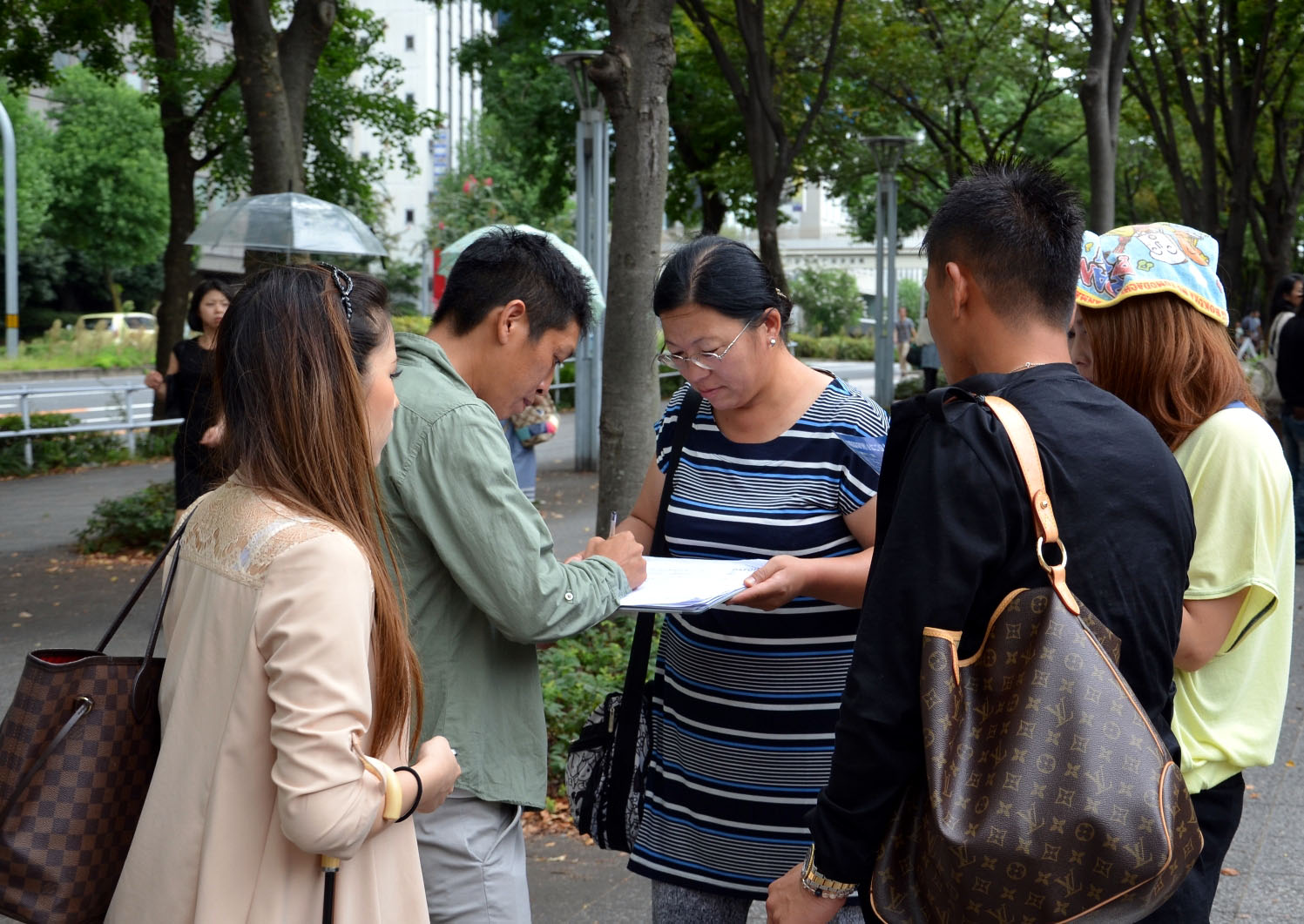 当天的活动从上午十点钟开始,许多民众一看到法轮功学员打出的,呼吁制止中共活摘器官的横幅,以及介绍法轮功真相的资料后,毫不犹豫地在征签表上签名。