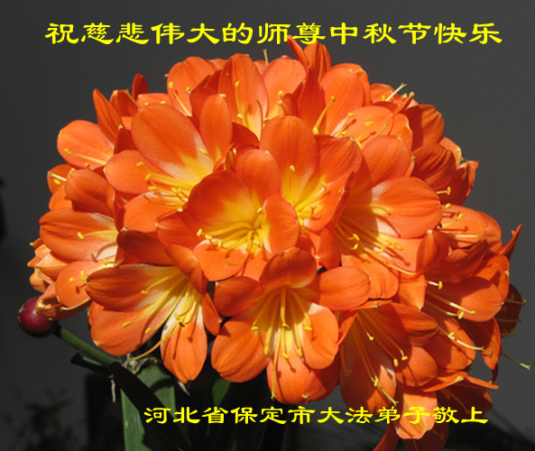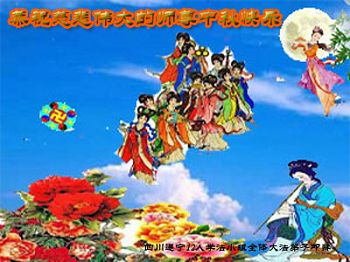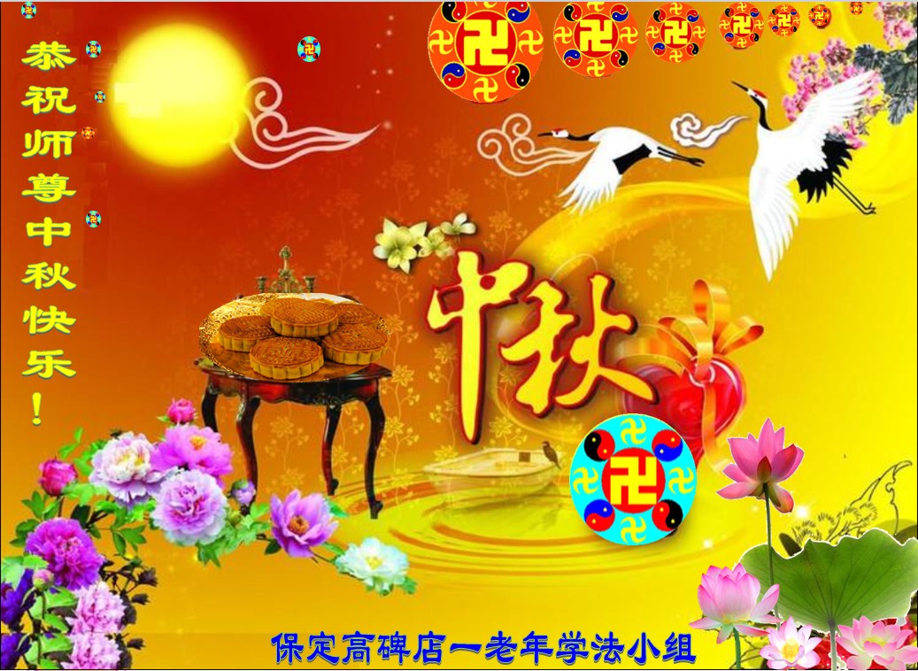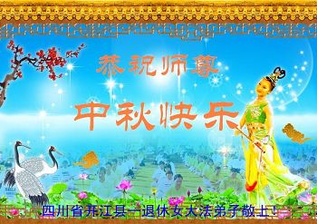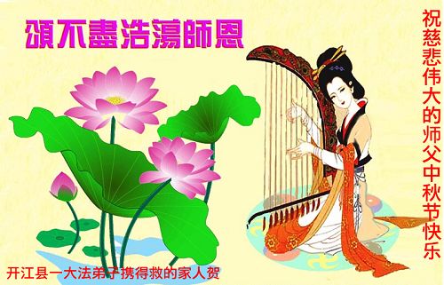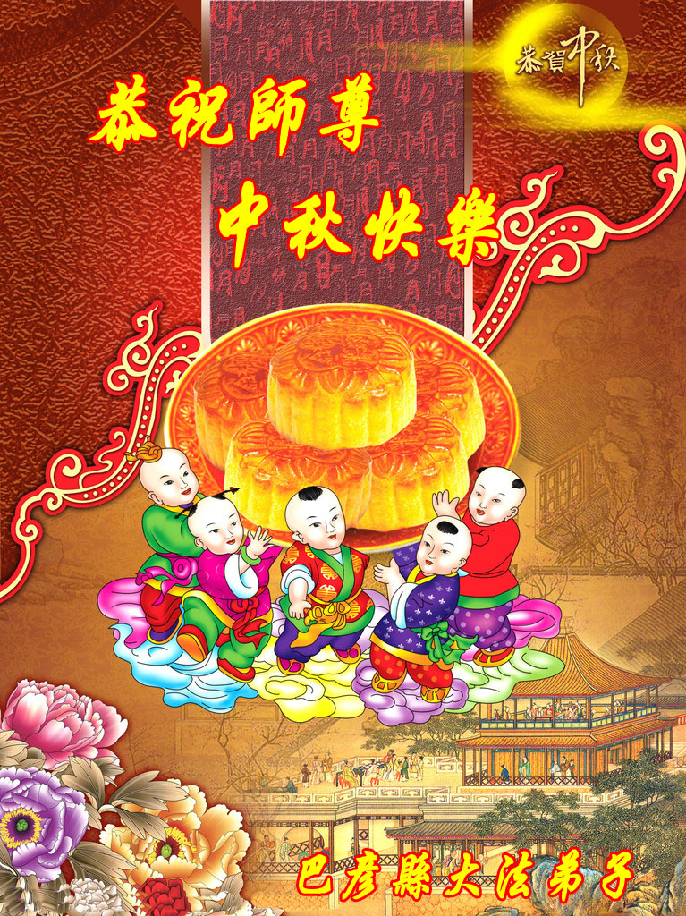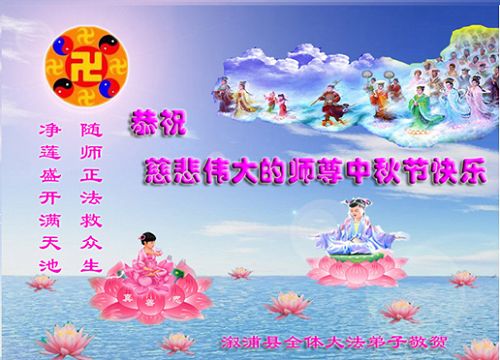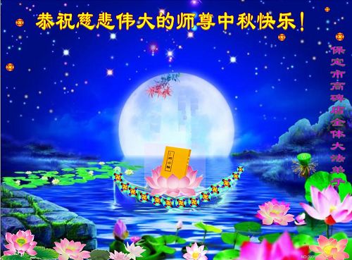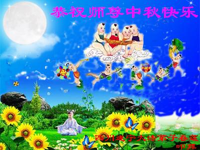 在中国传统的中秋佳节来临之际,我们八十多位明真相得福报的生命感恩大法、感恩慈悲伟大师尊的救度与呵护!共同祝愿慈悲伟大的师尊中秋节快乐!