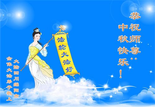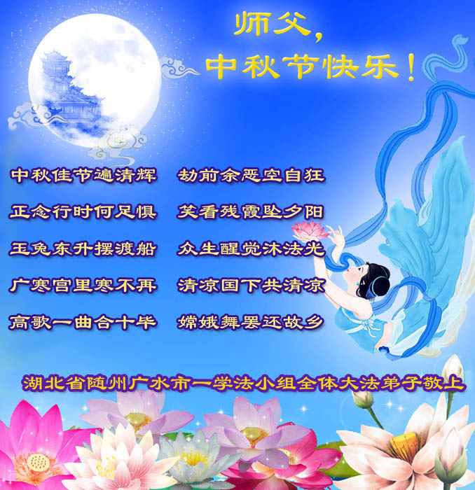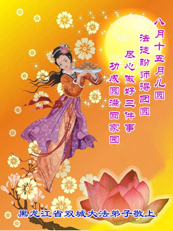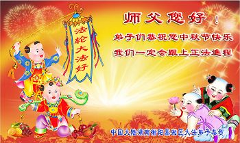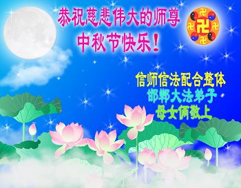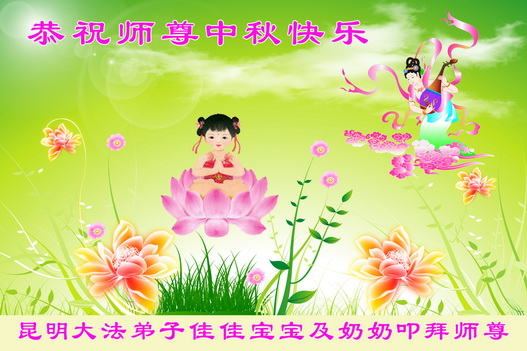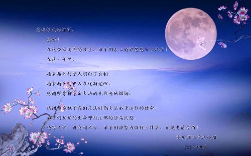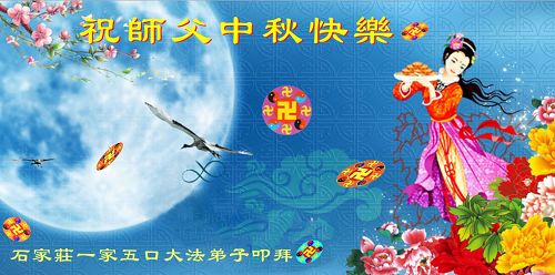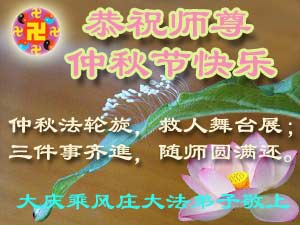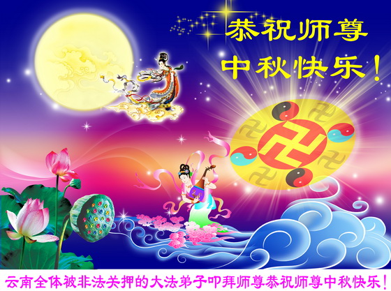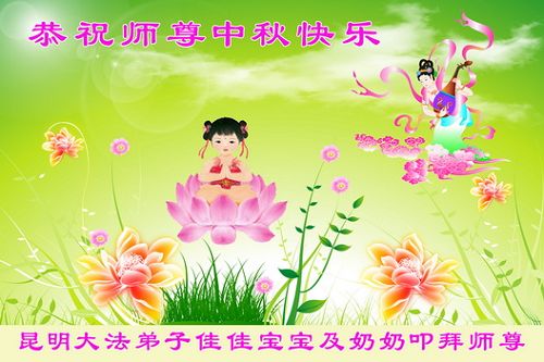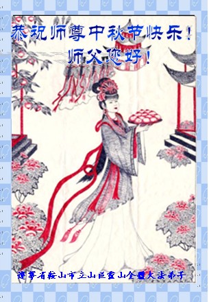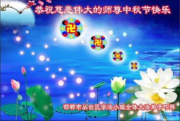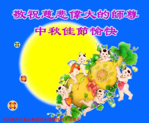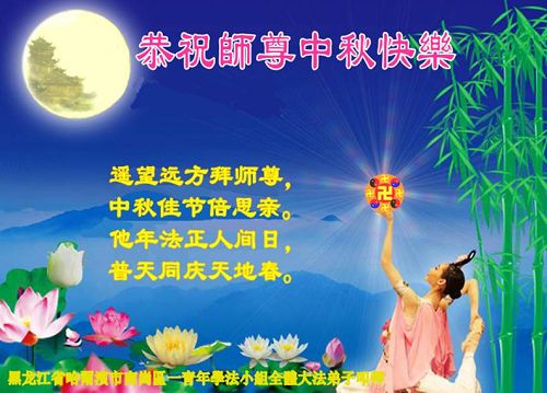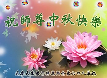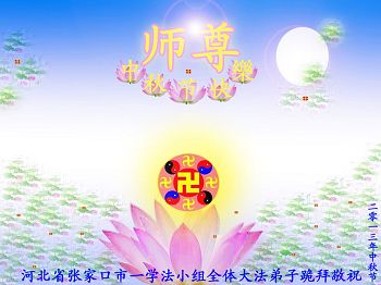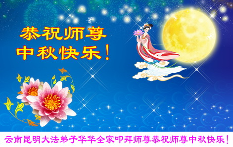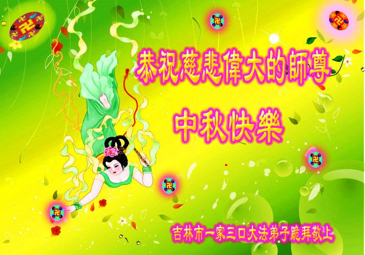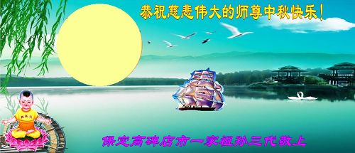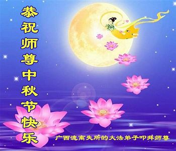 师尊您好:一年一度的中秋节又到了,在这佳节到来之际,我们全家三名大法弟子叩首跪拜师尊,