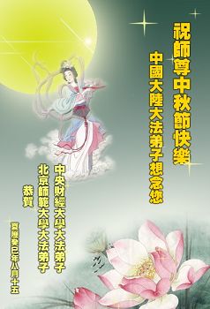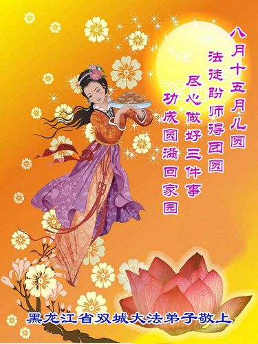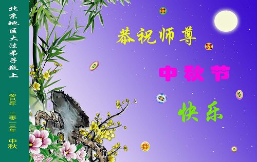 我是北京一名中年大法弟子,修炼15年了,身心受益。又一年中秋节到了,每逢佳节倍思亲,师父给予了弟子和家人新生,师父是弟子在世间最亲的人,弟子向伟大的师尊问好!我要更加勇猛精進,做好三件事,和同修配合多救人,不辜负师父的慈悲苦度,圆满随师还。我代表明真相、已三退的家人向伟大的师尊问好!
