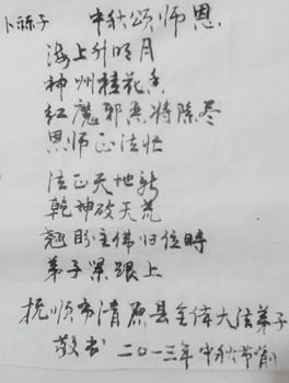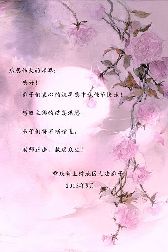 <英文版: http://en.minghui.org/html/articles/2013/9/19/142118.html>大陆军队大法弟子恭祝师尊中秋好